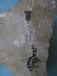 Leuke kleine handgemaakte Eenhoorn hanger met een Aquamarijn en blauwe Goudsteen kraal